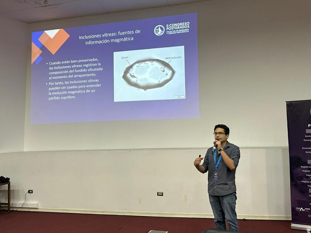 En esta segunda edición del congreso, participaron 10 estudiantes del Programa de Doctorado en Ciencias mención Geología, quienes expusieron avances y resultados preliminares de sus respectivas líneas de investigación: